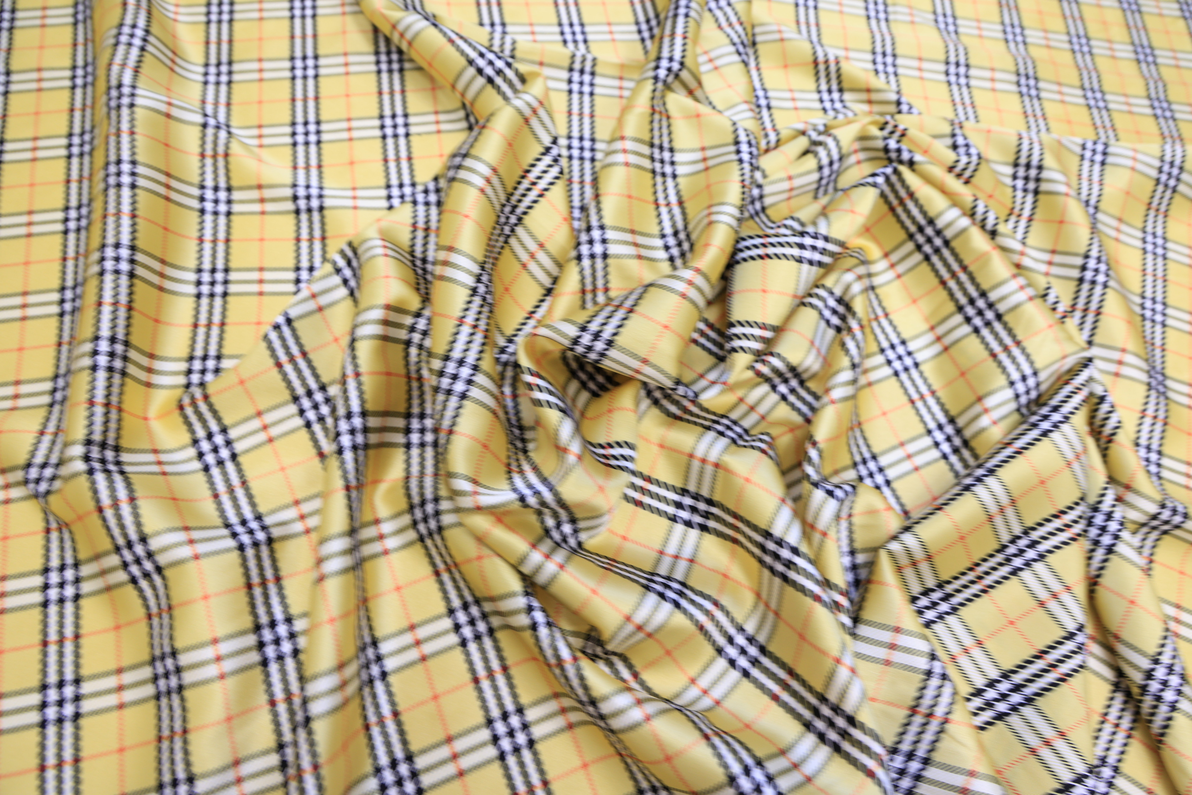 Атлас стрейч желто-золотой в клетку