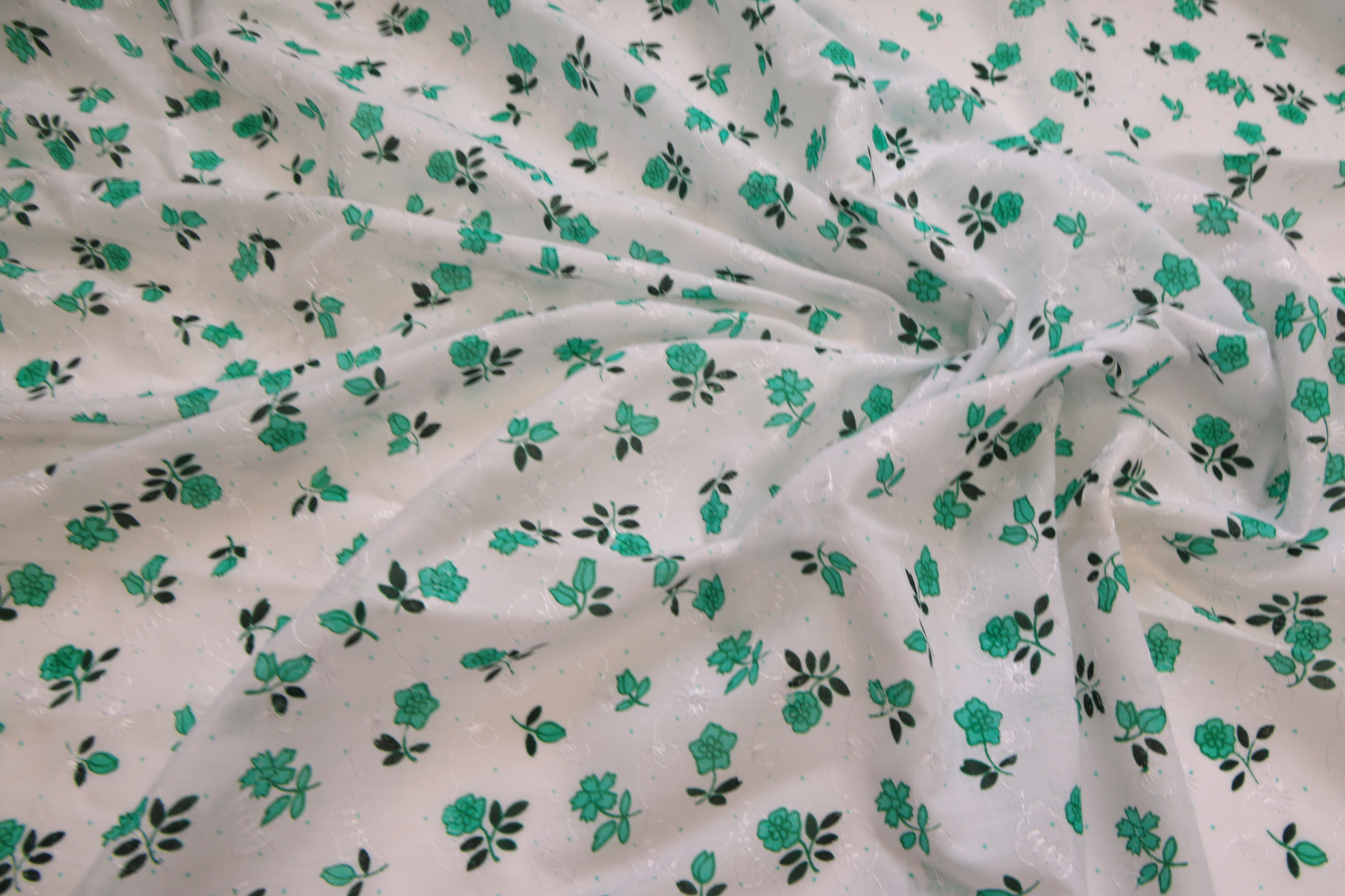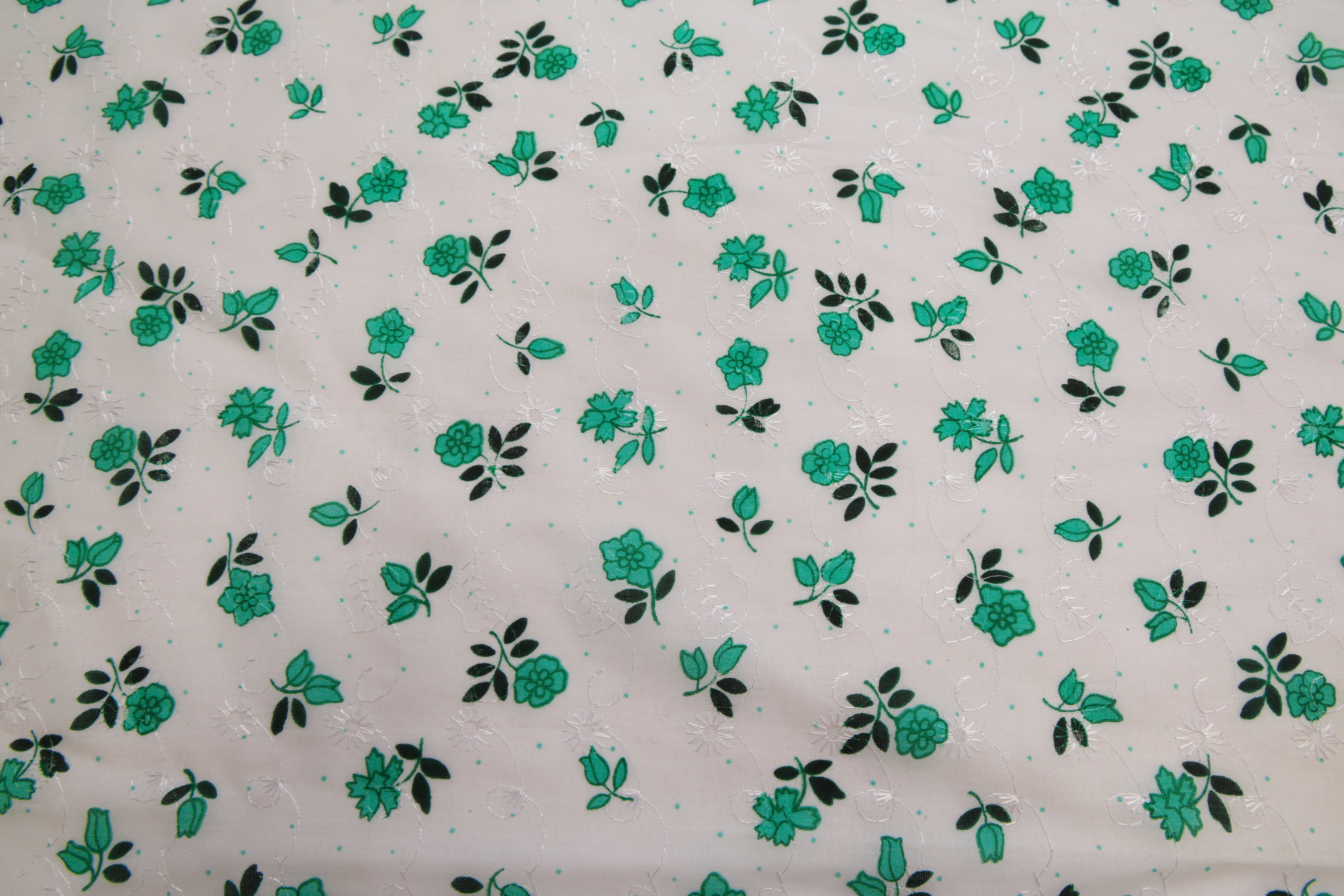 Батист вышивка белый в зеленый цветочек