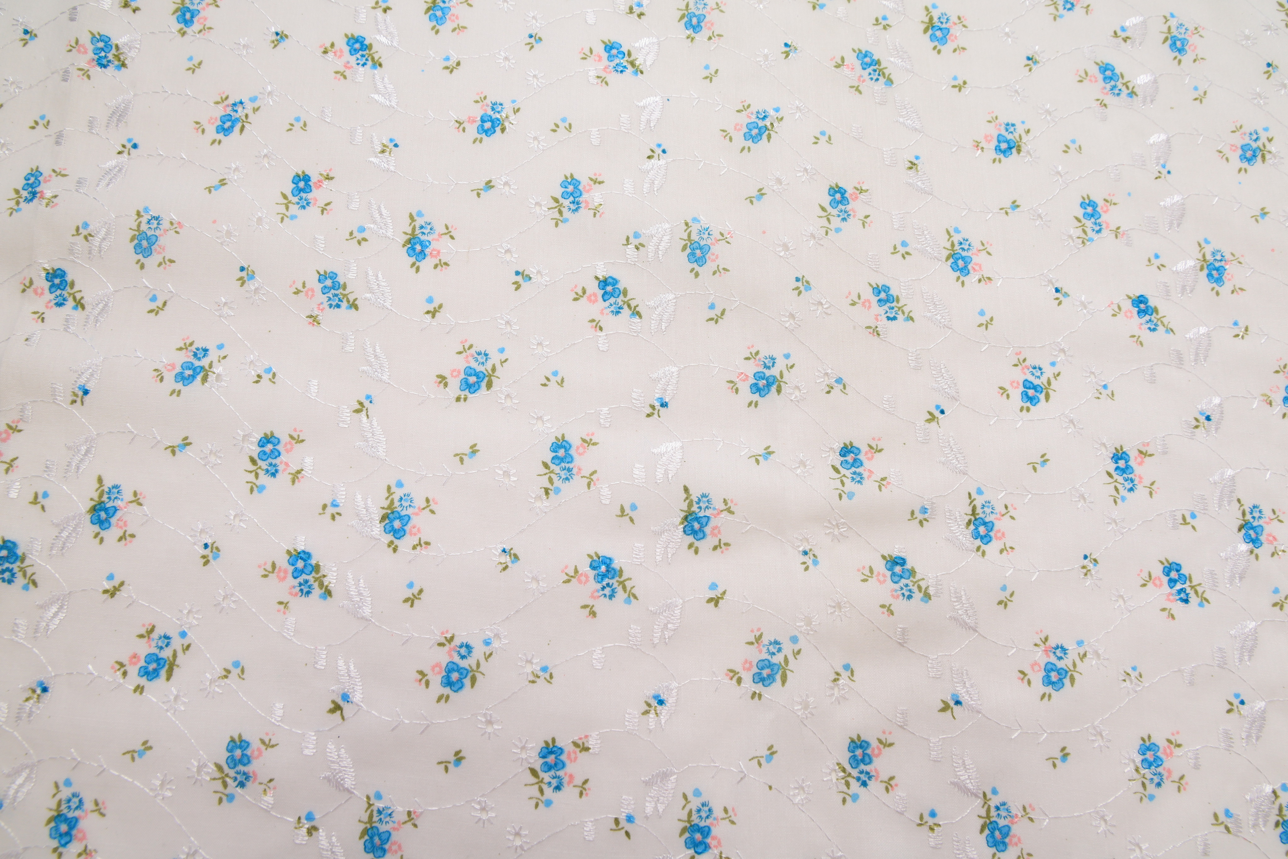 Батист вышивка в голубой цветок