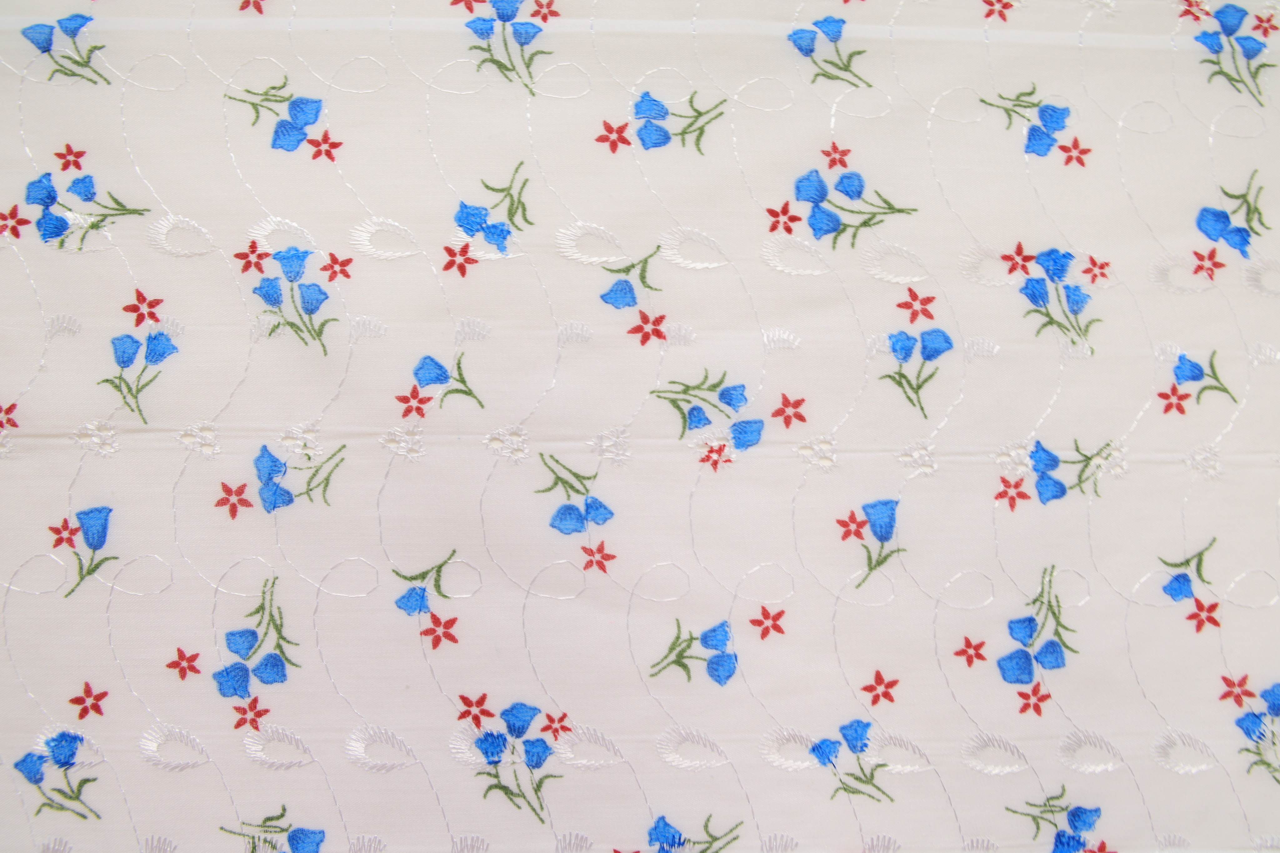Батист вышивка в голубой цветок