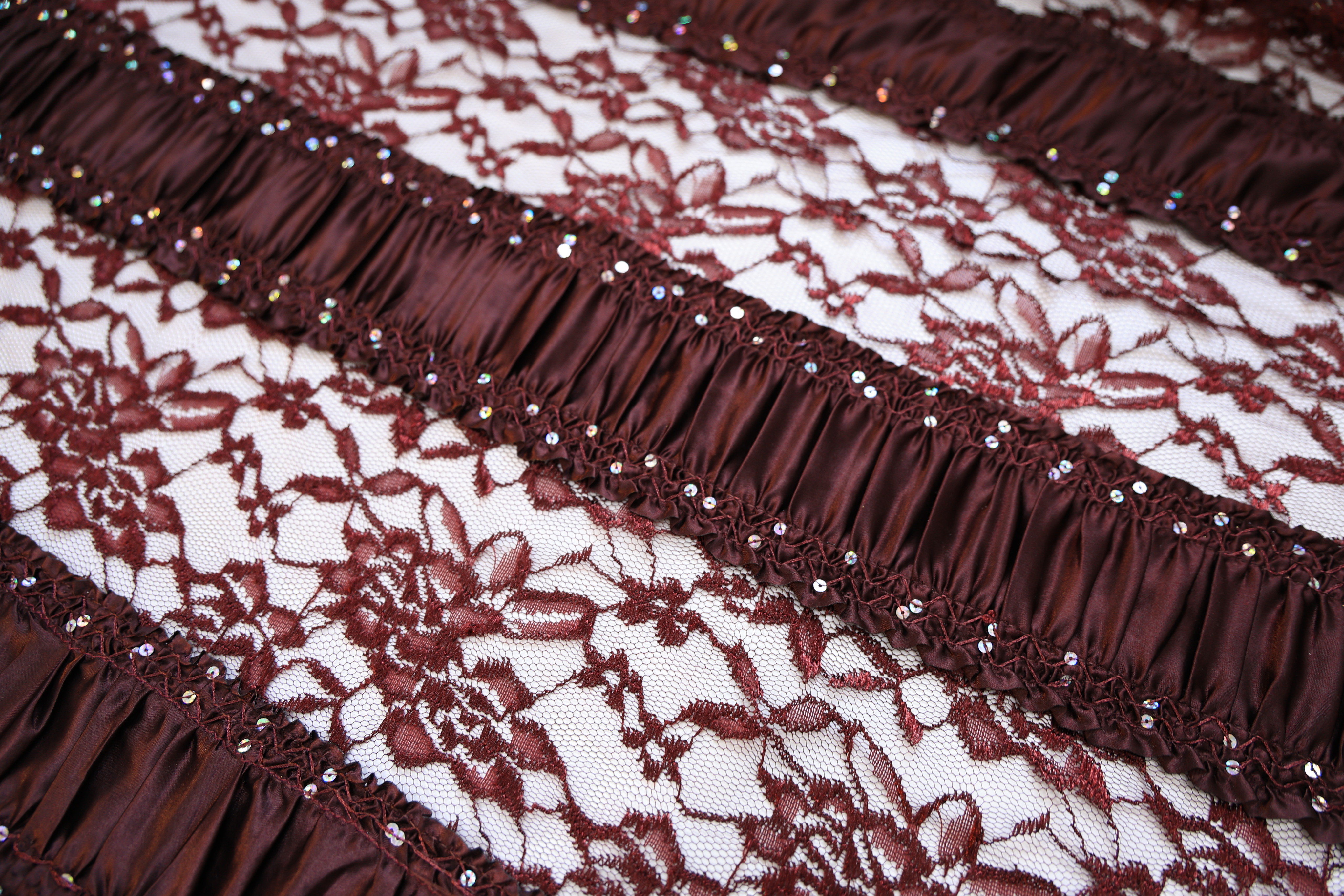 Гипюр атлас пайетки бордовый