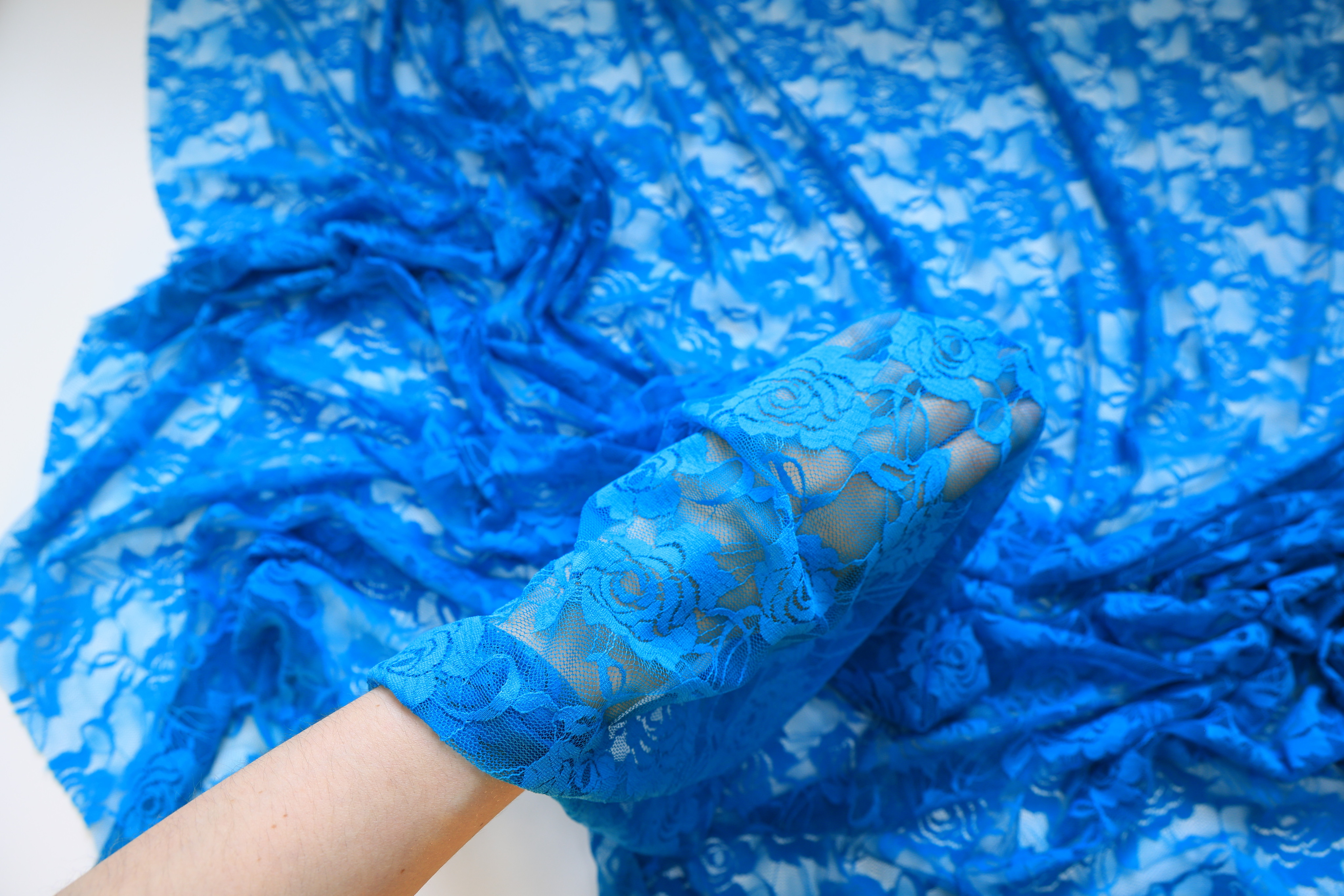 Гипюр стрейч синий