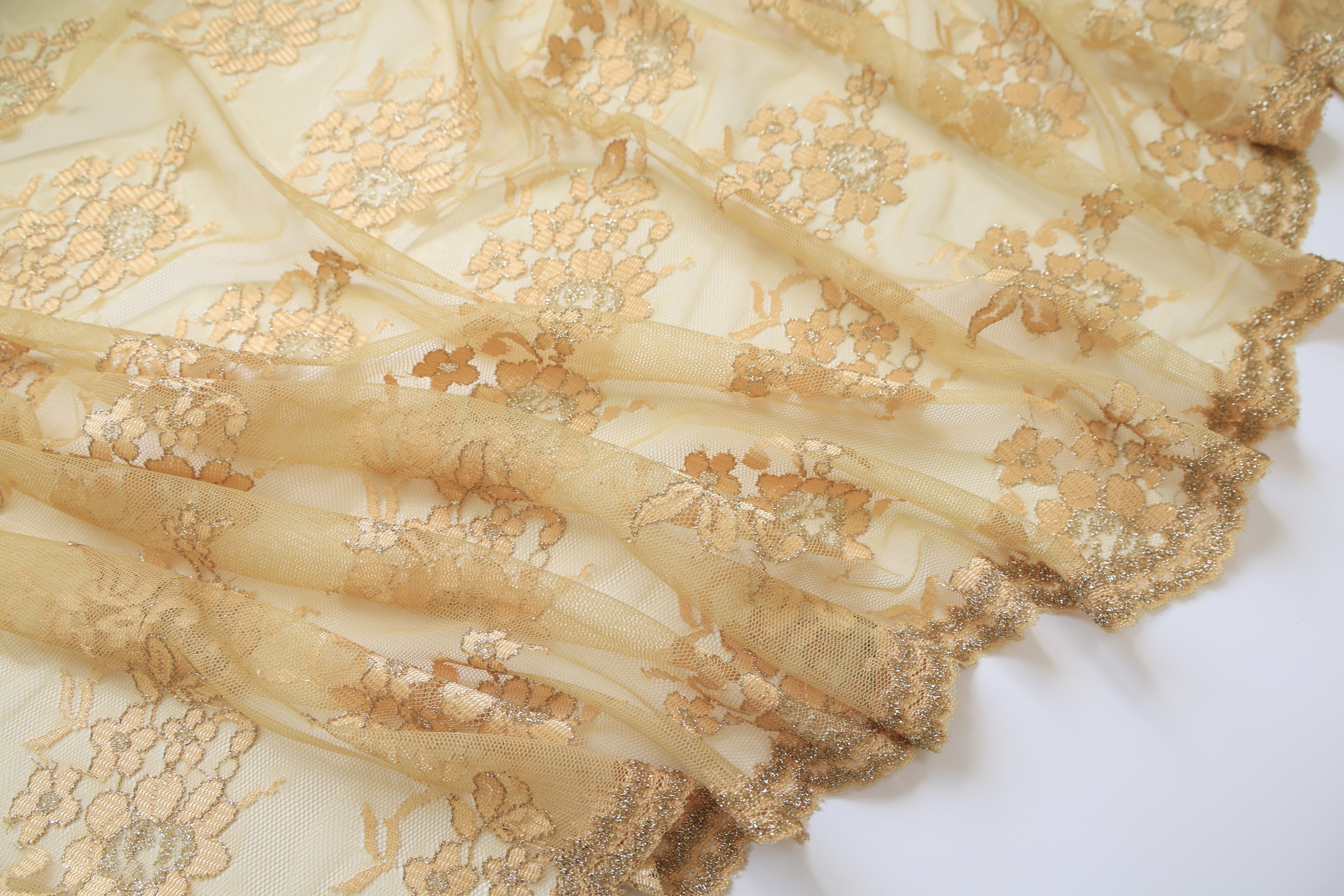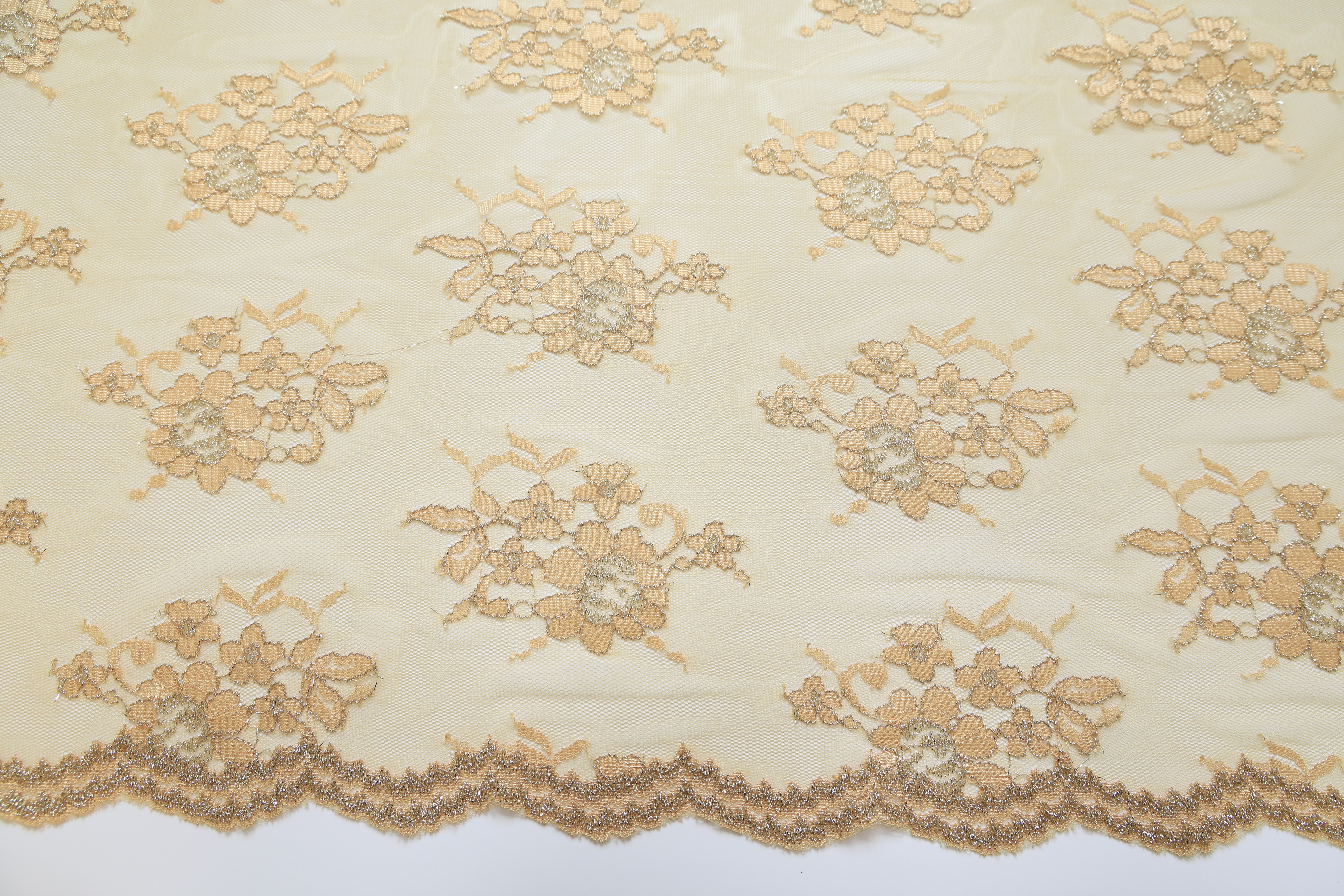 Гипюр стрейч металлик бежевый