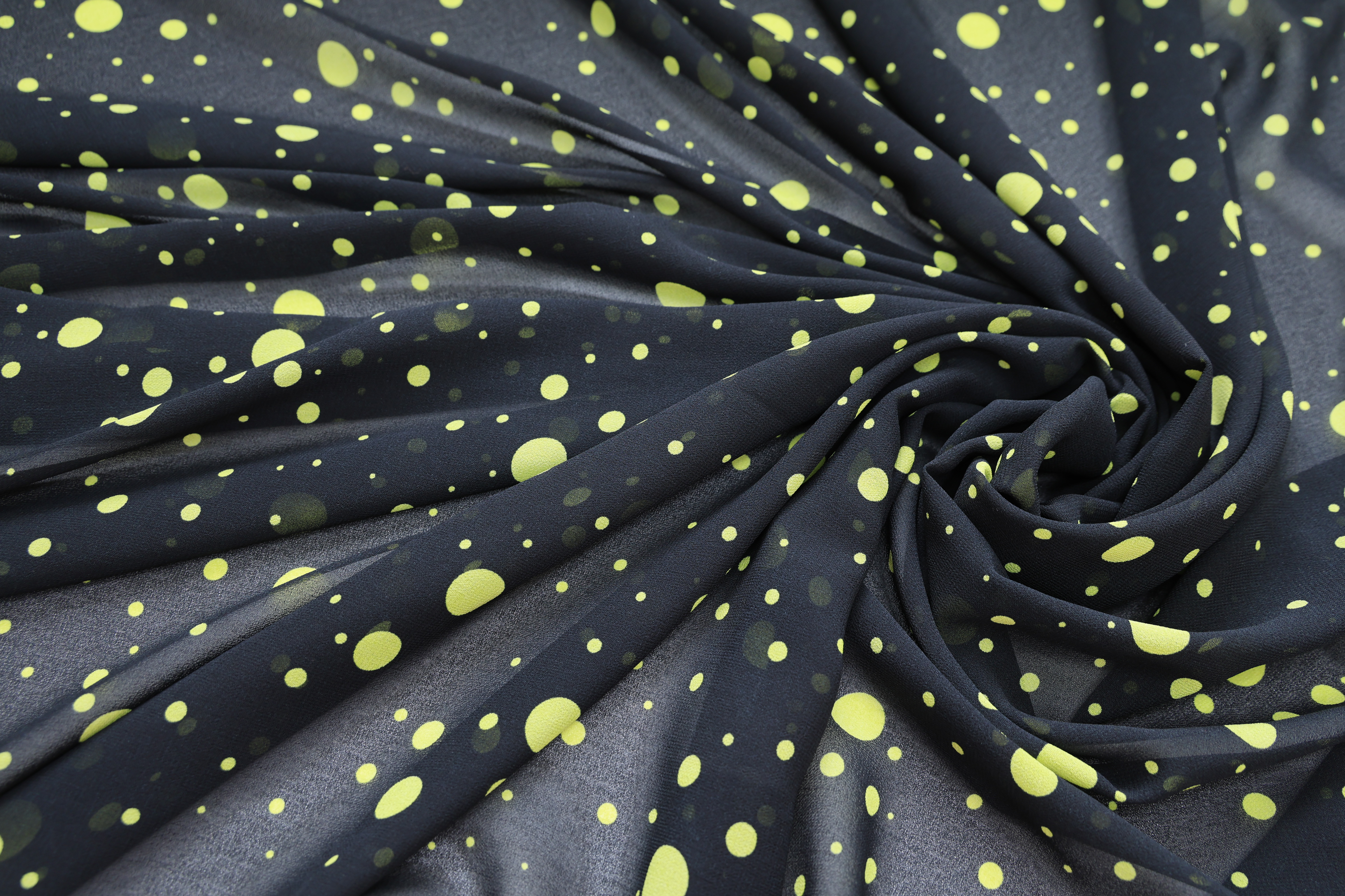 Креп-жоржет черный в лимонный горох