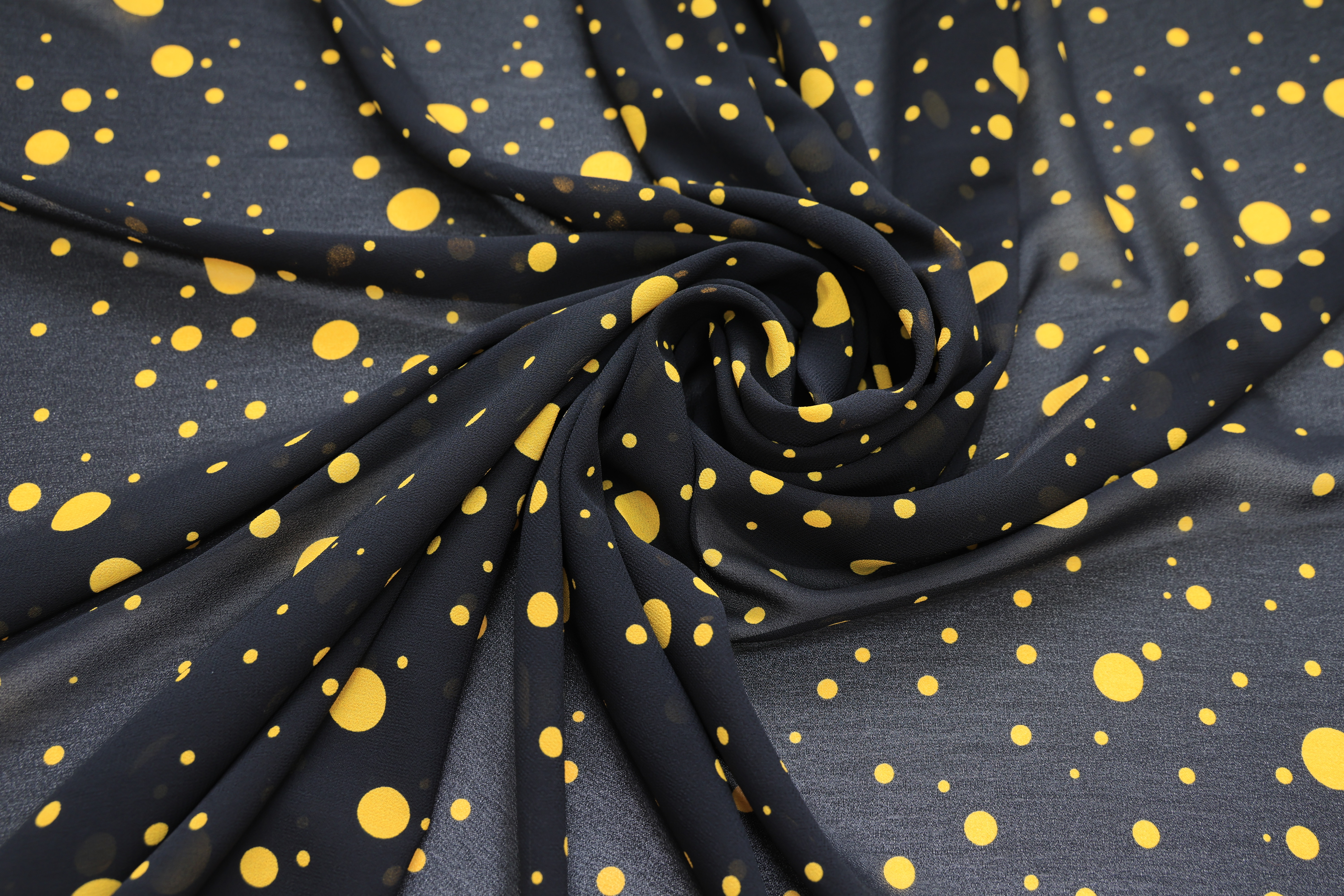 Креп-жоржет черный в желтый горох