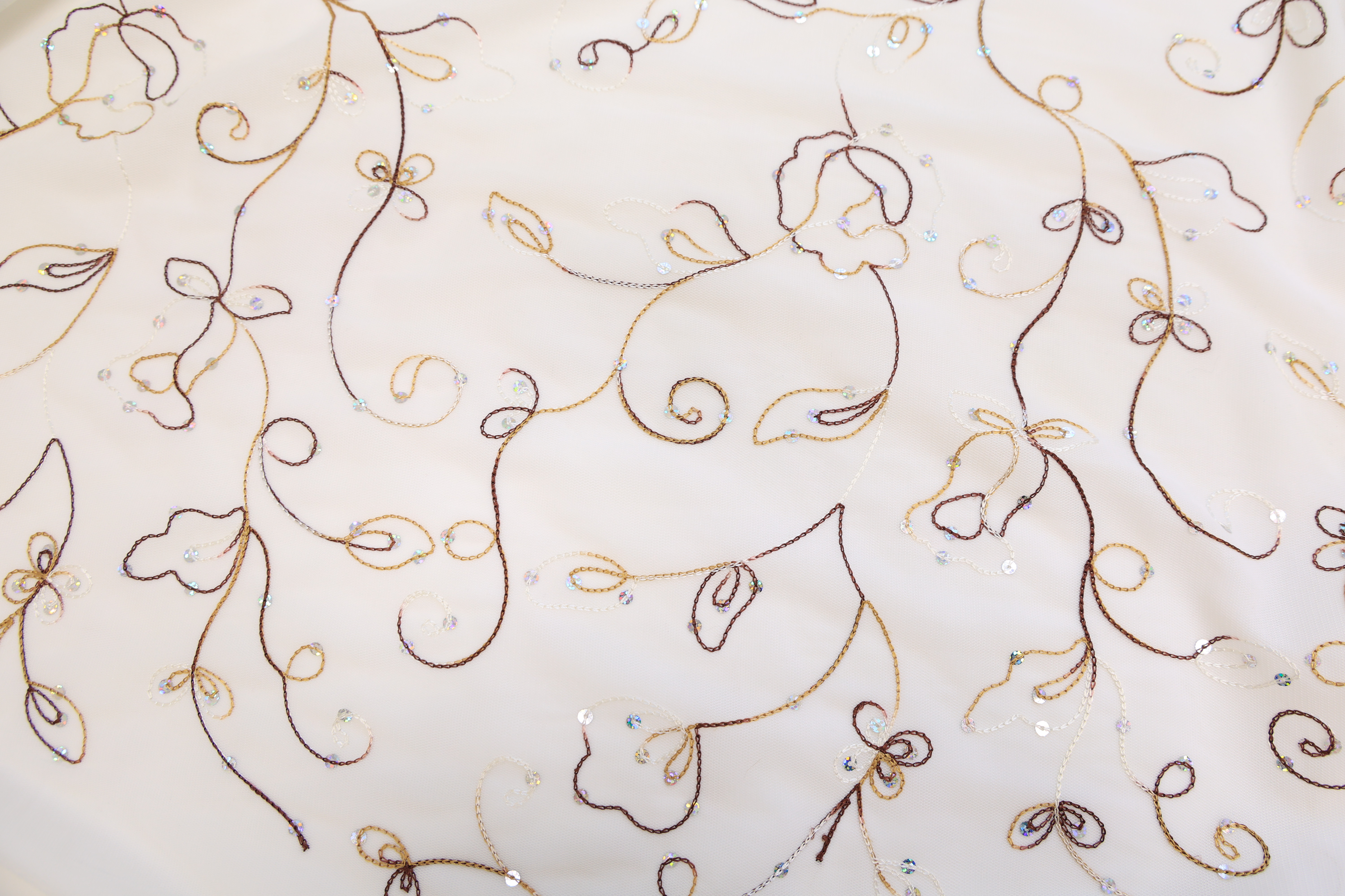 Пайетки на сетке коричневая вышивка