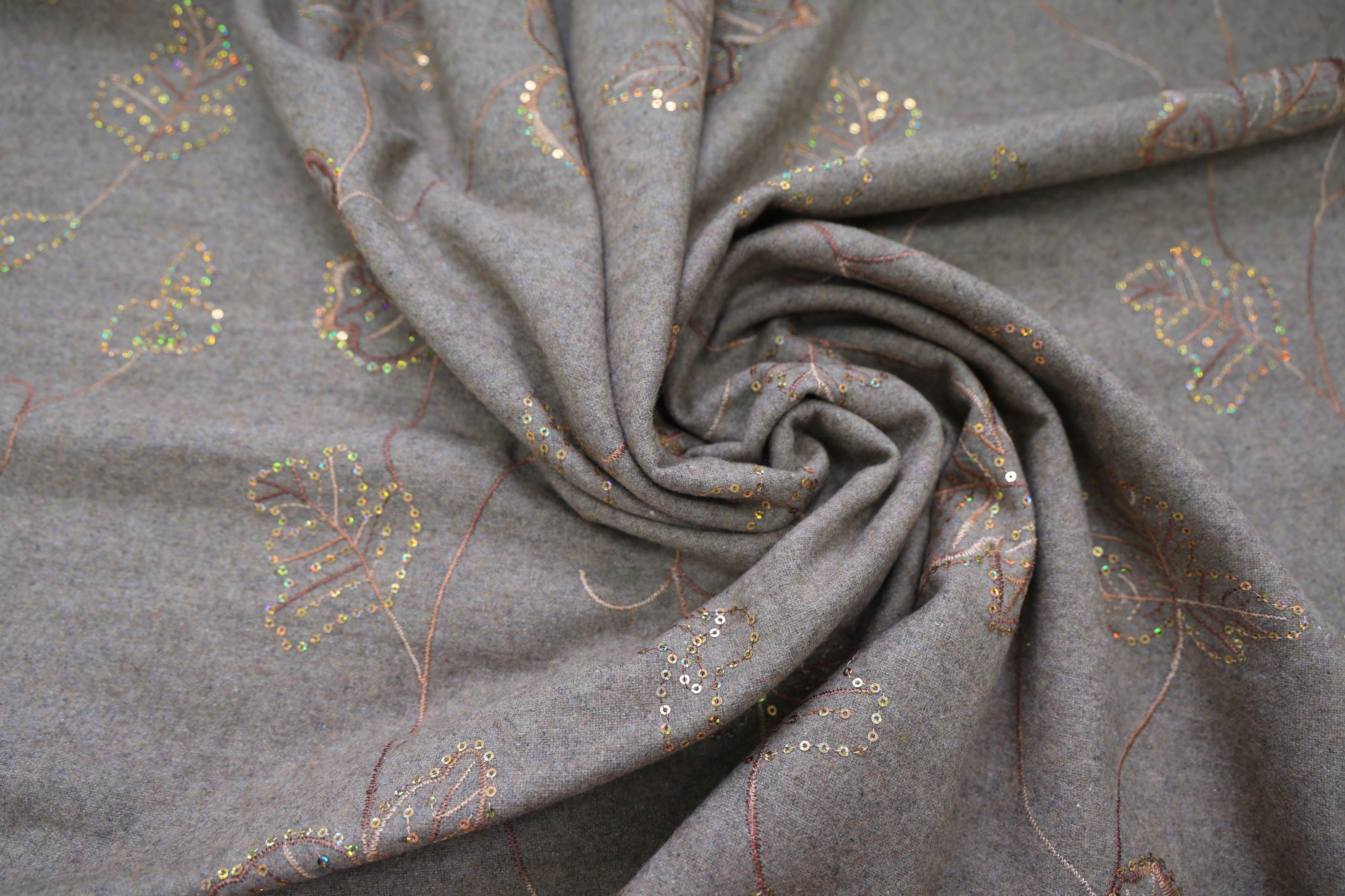 серо-бежевый рисунок листочки + пайетки