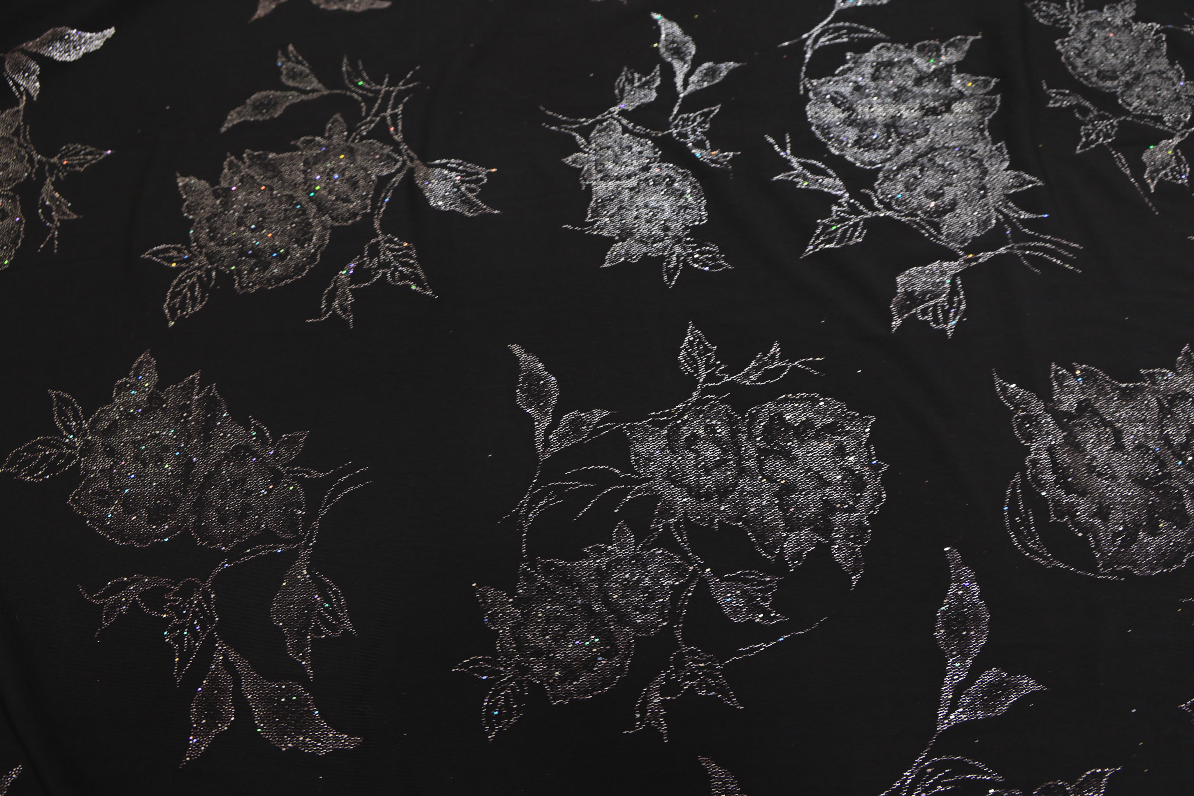 черный, серебряный принт цветы