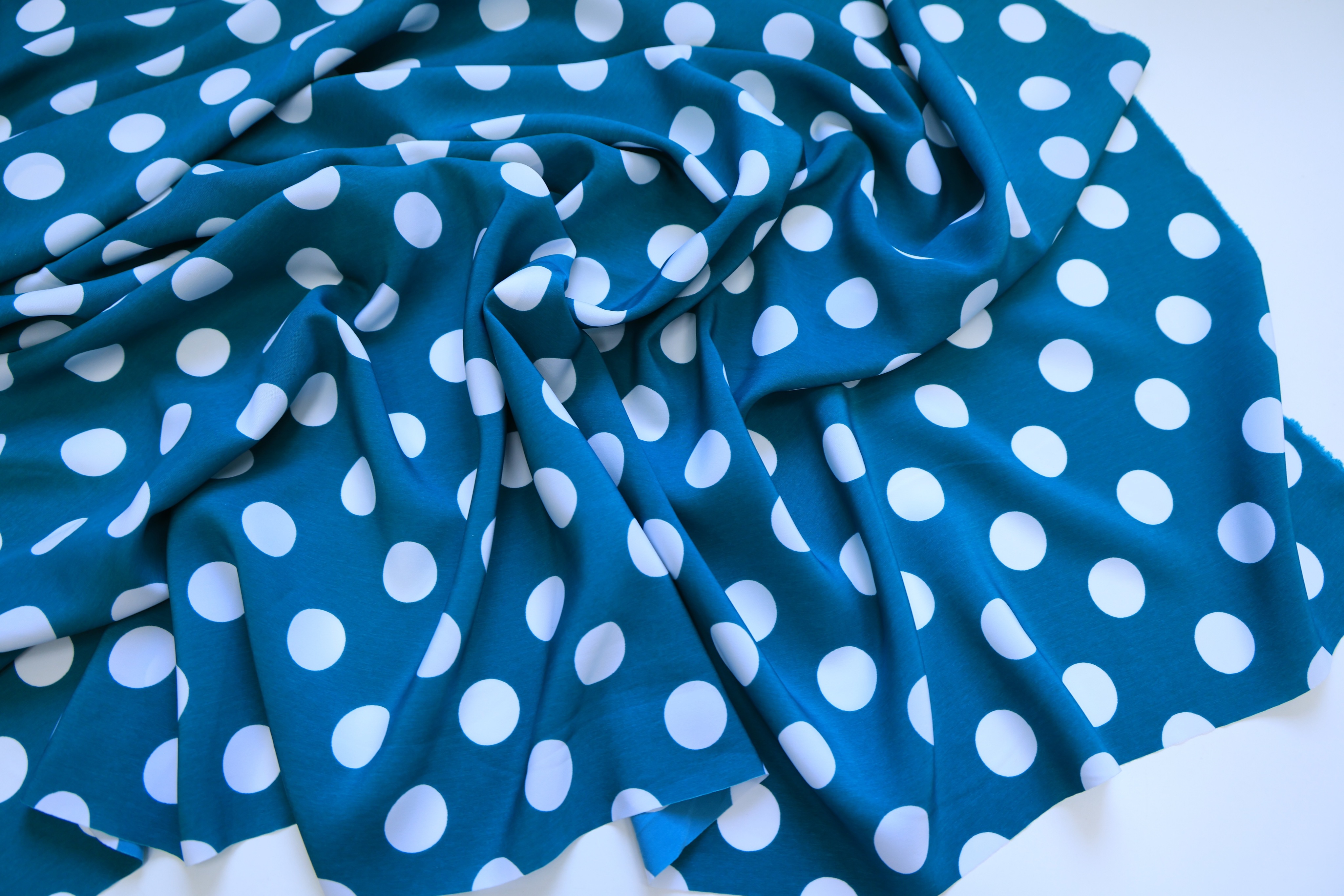 Вискоза морская волна в белый средний горох