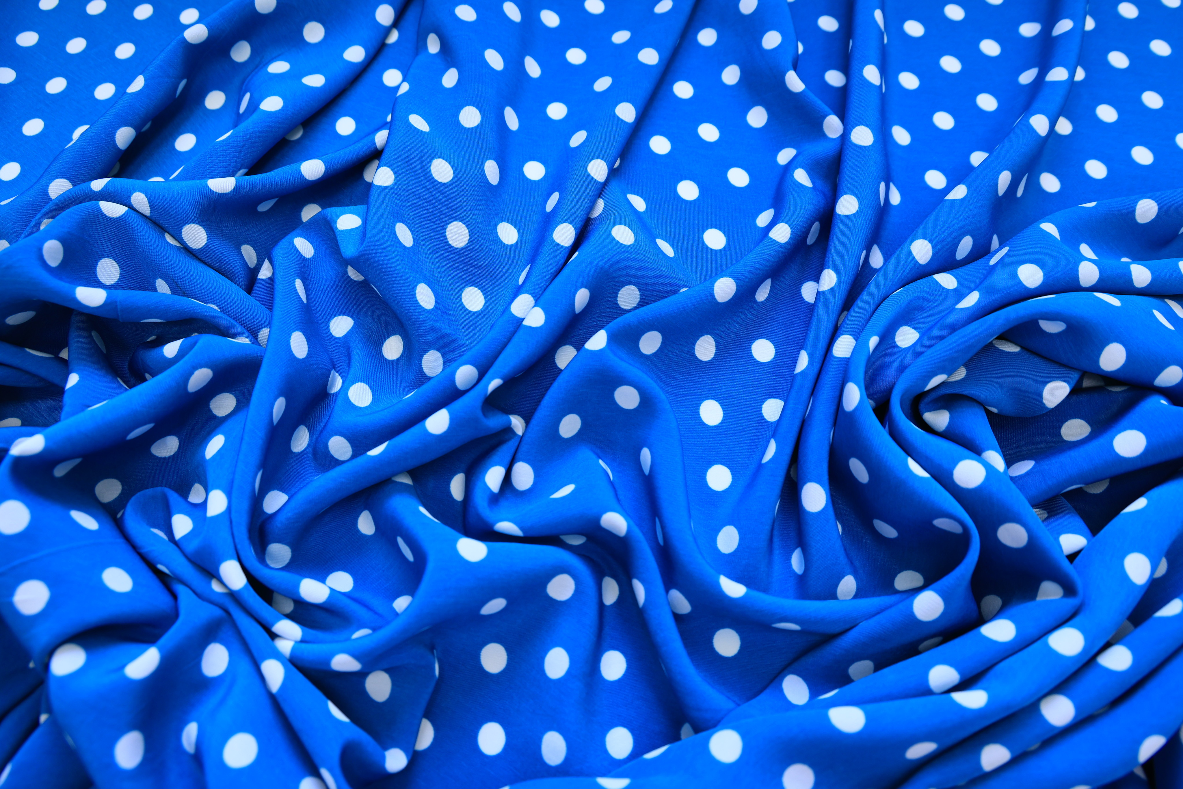 Вискоза голубая в малый белый горох