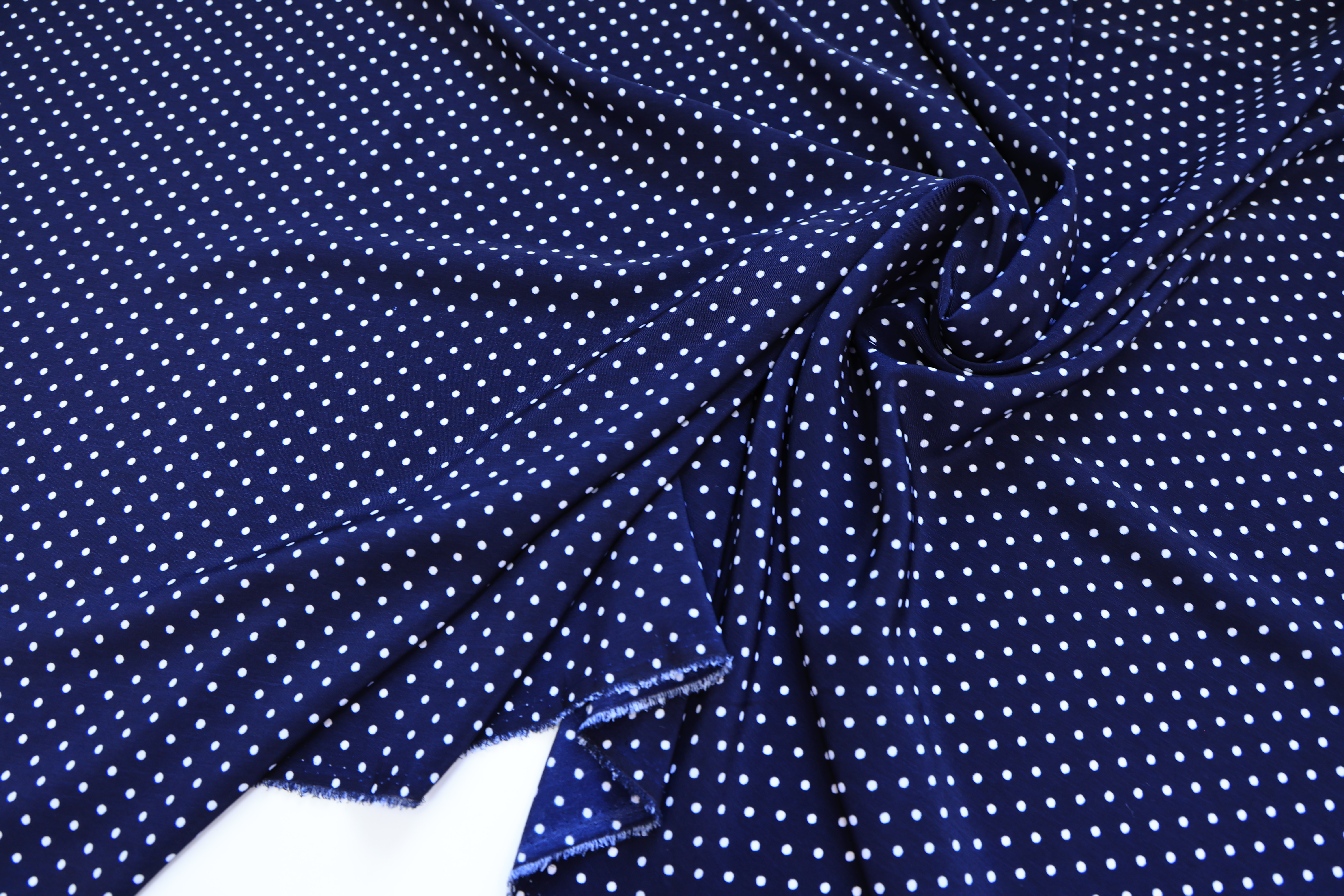 Вискоза темно-синяя в мелкий белый горох