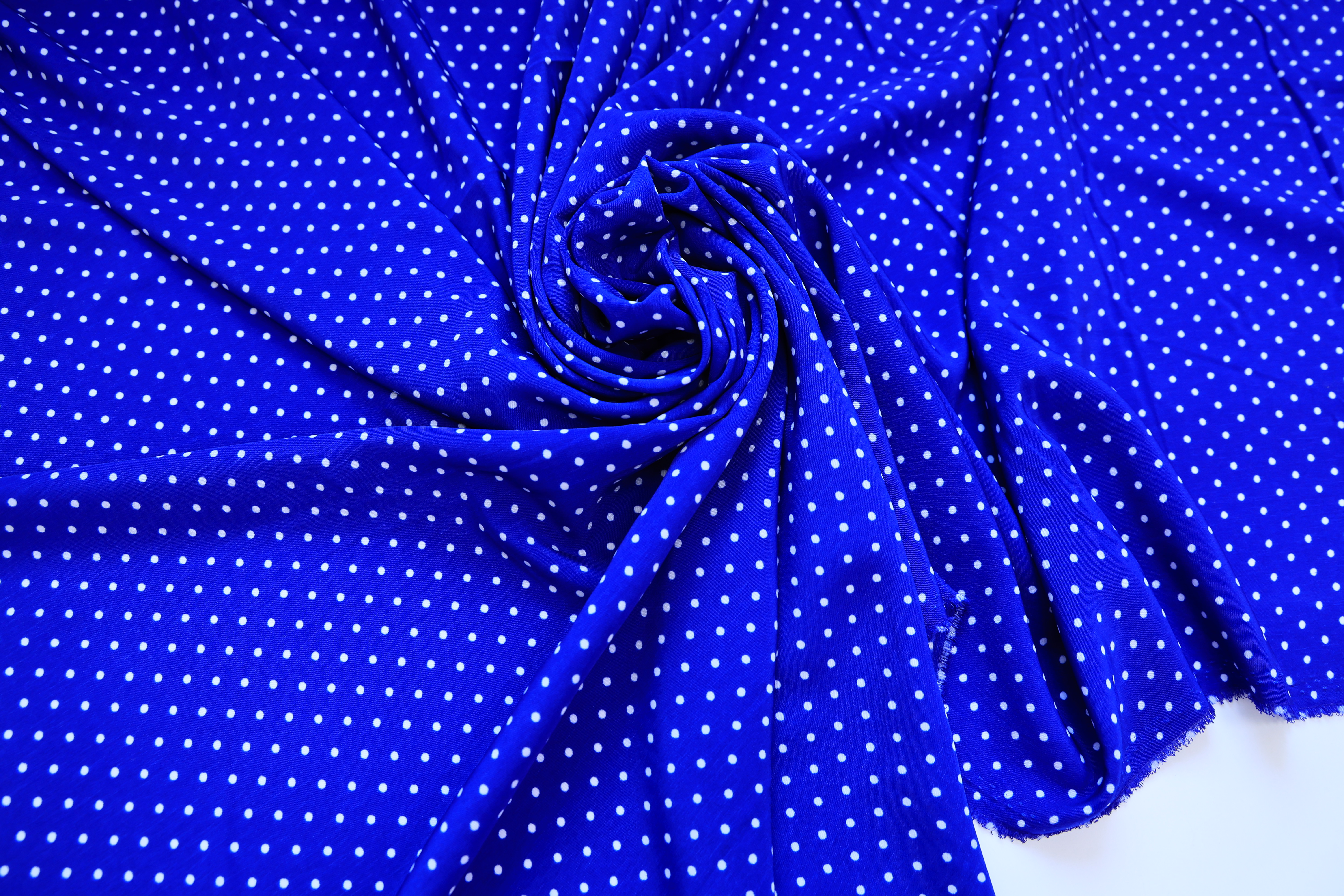 Вискоза василек в белый мелкий горох