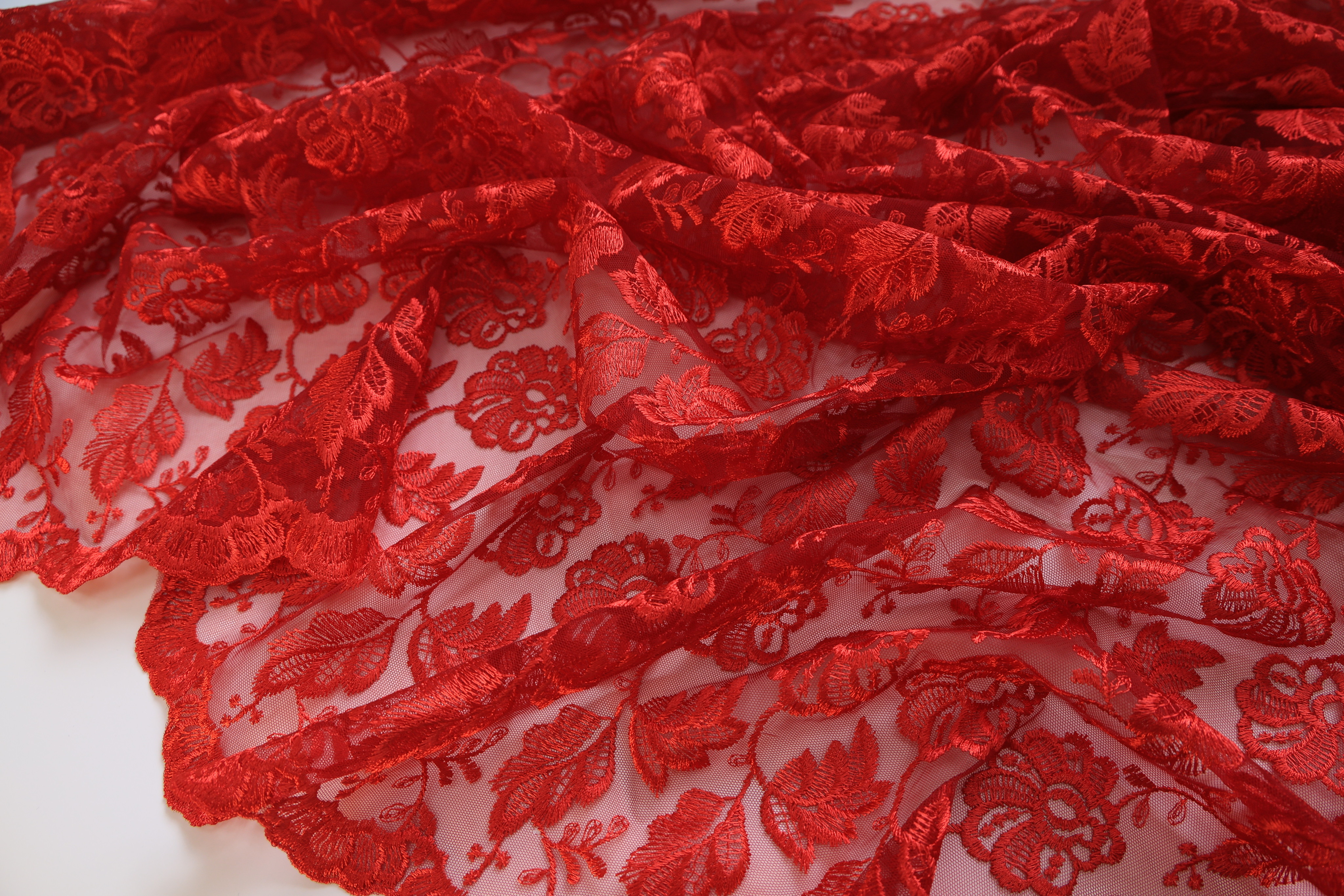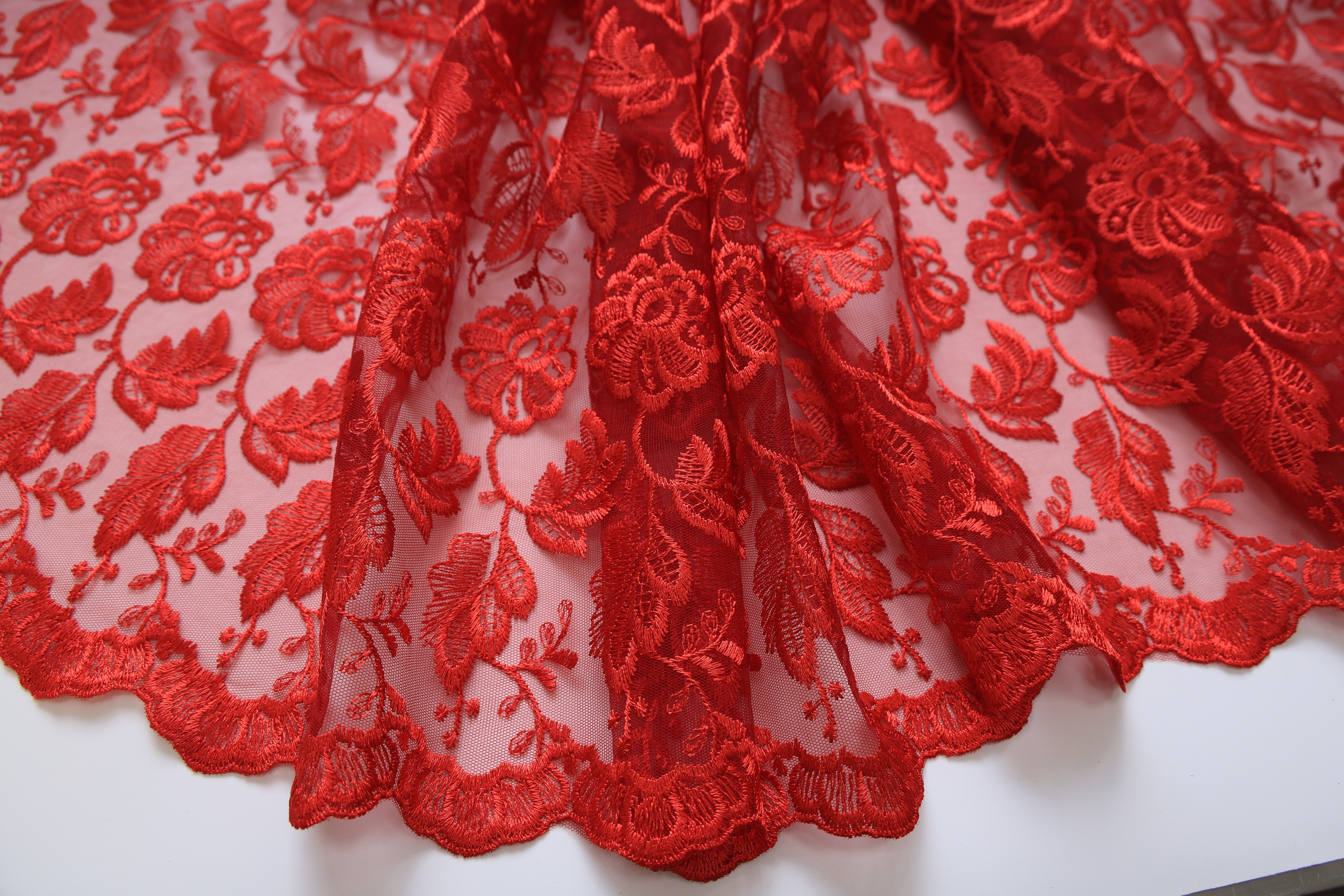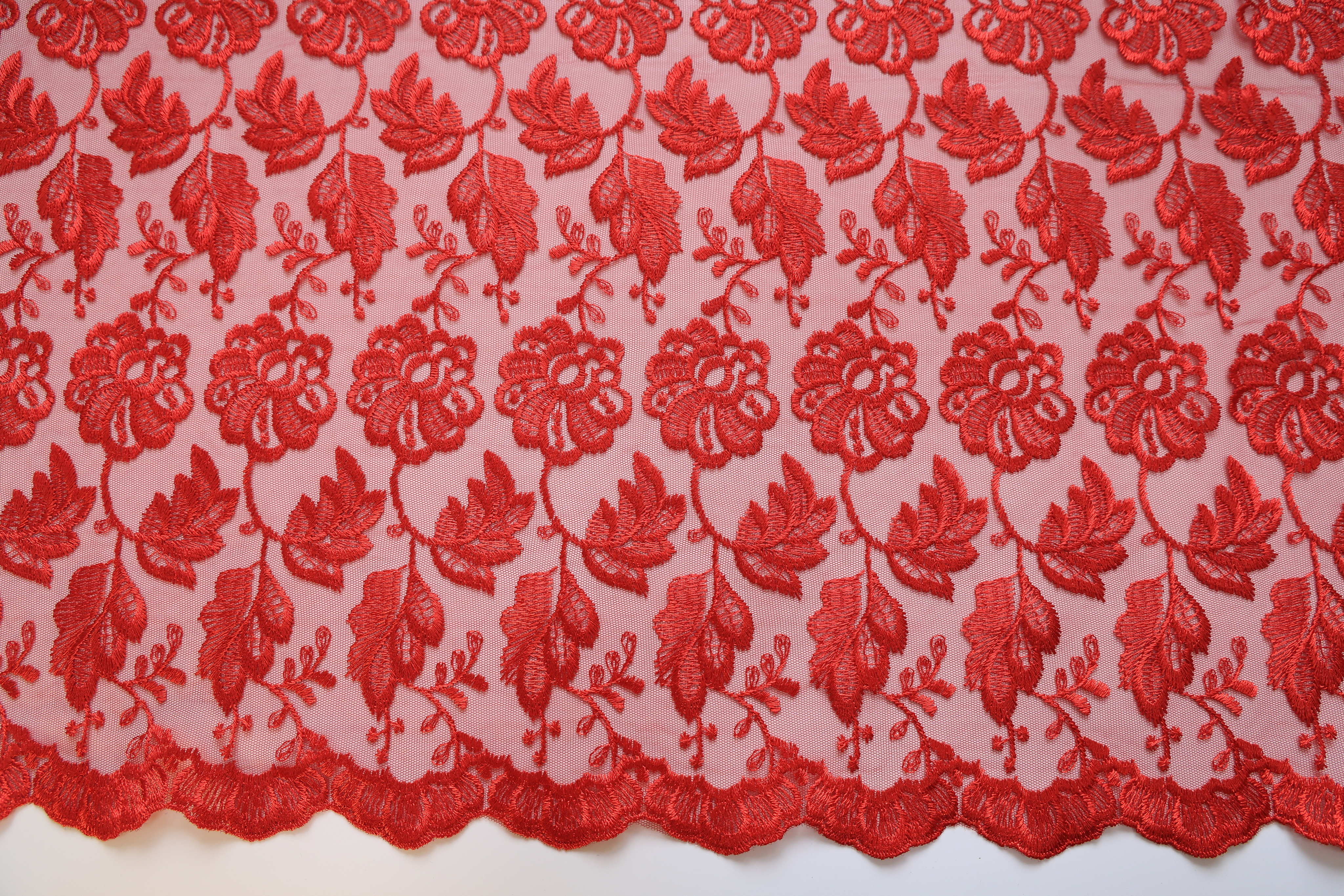 Вышивка на сетке красная