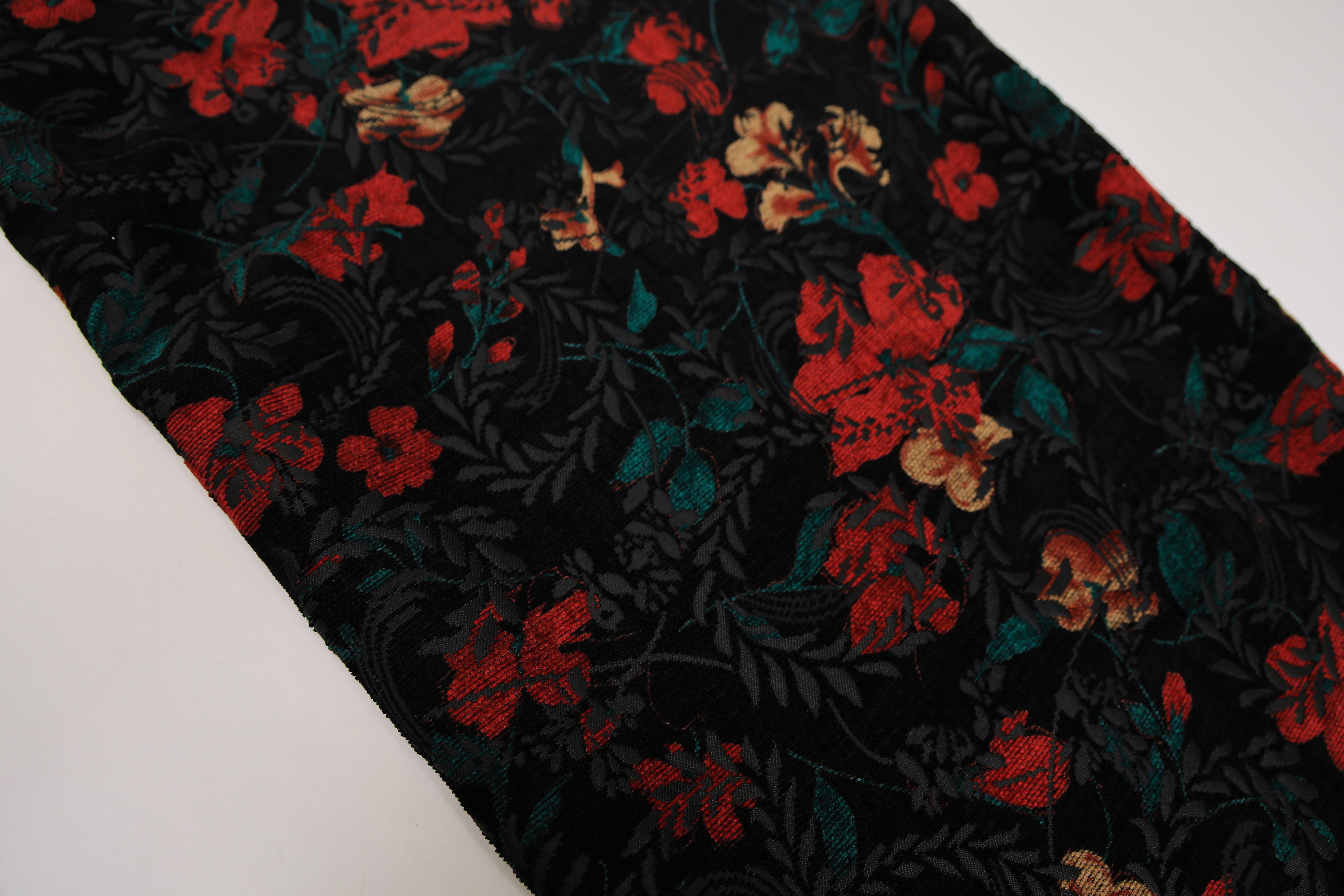 Жаккард черный с красными цветами